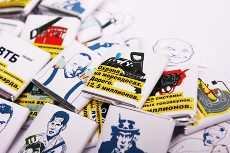 Любопытно, что одним из источников поступления финансовых средств стала продажа антикоррупционного шоколада под названием «Сладкий кусочек бюджета». Выпустила его компания Shokobox. Как сообщает Sostav.ru, на коробке с кондитерским изделием изображен логотип «Роспила». Внутри размещены шоколадки небольшого размера, посвященные персонажам российской политической элиты и ее коррупционным достижениям.