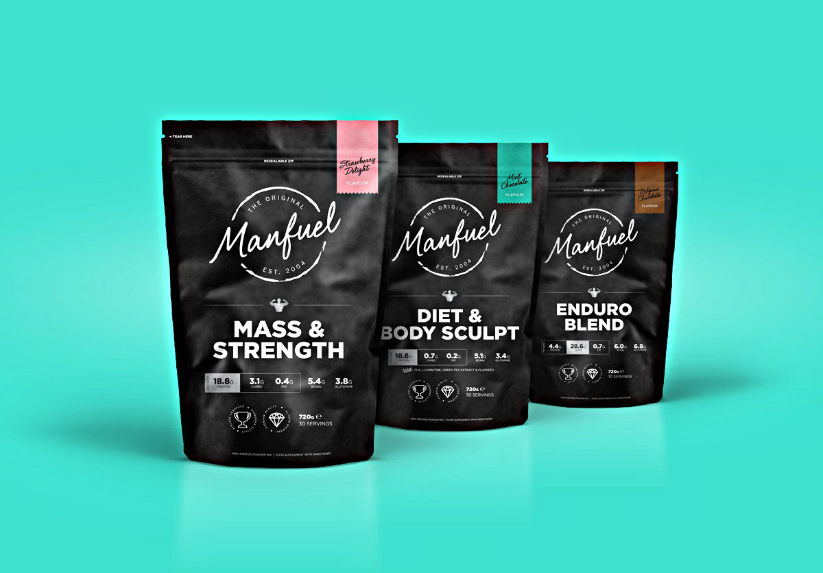Упаковка для производителя порошкообразных продуктов для занятий спортом Manfuel была разработала американским агентством fifty3. Дизайнеры провели повторное позиционирование бренда, сделав основной акцент на продуктах, придающих силы, пишет Upakovano.ru.