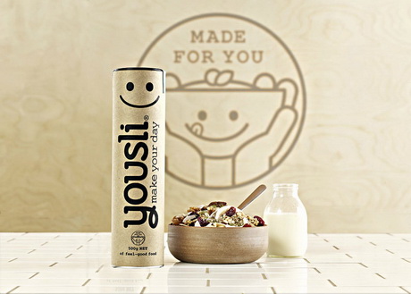 Yousli — это онлайн-бренд мюсли, который осуществляет доставку цельнозерновых продуктов прямо до дверей покупателя в Австралии. Поскольку лозунгом компании является «Почувствуй хорошую еду», производителю было важно использовать для оформления бренда большую улыбку. Она олицетворяет всё то хорошее, что есть внутри него, а также самочувствие потребителя после употребления мюсли.