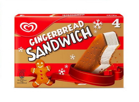 Флоренс Хоуэлл (Florence Howell), бренд-менеджер Wall’s в Unilever UK, рассказал: «Имбирное печенье является популярным вкусом среди потребителей, особенно в зимние месяцы. Именно на это рассчитывает мороженое Wall’s Gingerbread Sandwich». Упаковка мороженого оформляется фирменным красно-белым логотипом Wall’s в виде сердца, а также ключевыми рождественскими символами, в том числе имбирным человечком и снежинками.