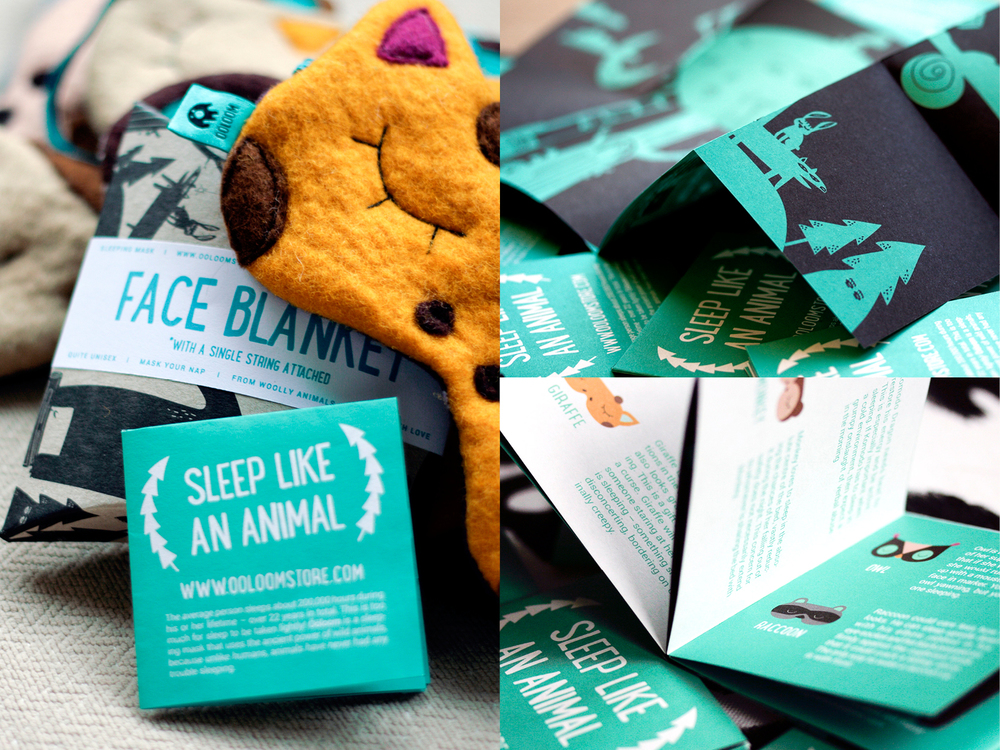 Ööloom — это одеяло для лица, или маска для сна, которая использует древнюю силу диких животных, ведь, в отличие от человека, у животных никогда нет проблем со сном. Дизайнеры использовали яркую палитру сине-зелёных оттенков с высококонтрастными чёрными и белыми цветами. Все рисунки сделаны вручную, пишет Upakovano.ru.