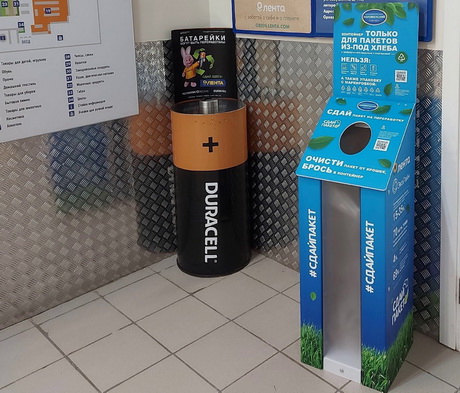 Контейнеры появились в пяти магазинах «Ленты» в Москве по следующим адресам: Борисовские Пруды, 26/2, Ленинский пр., 123, МКАД 47 км, стр. 20, Дмитровское шоссе,116, Ореховый бульвар, 22а. Покупатели могут сдать на переработку упаковку из-под хлебной продукции с маркировкой РР5. Контейнеры оснащены датчиками заполняемости, каждый рассчитан на 700 пакетов. Представители булочно-кондитерского холдинга «Коломенский» отправляют собранное сырьё на переработку.