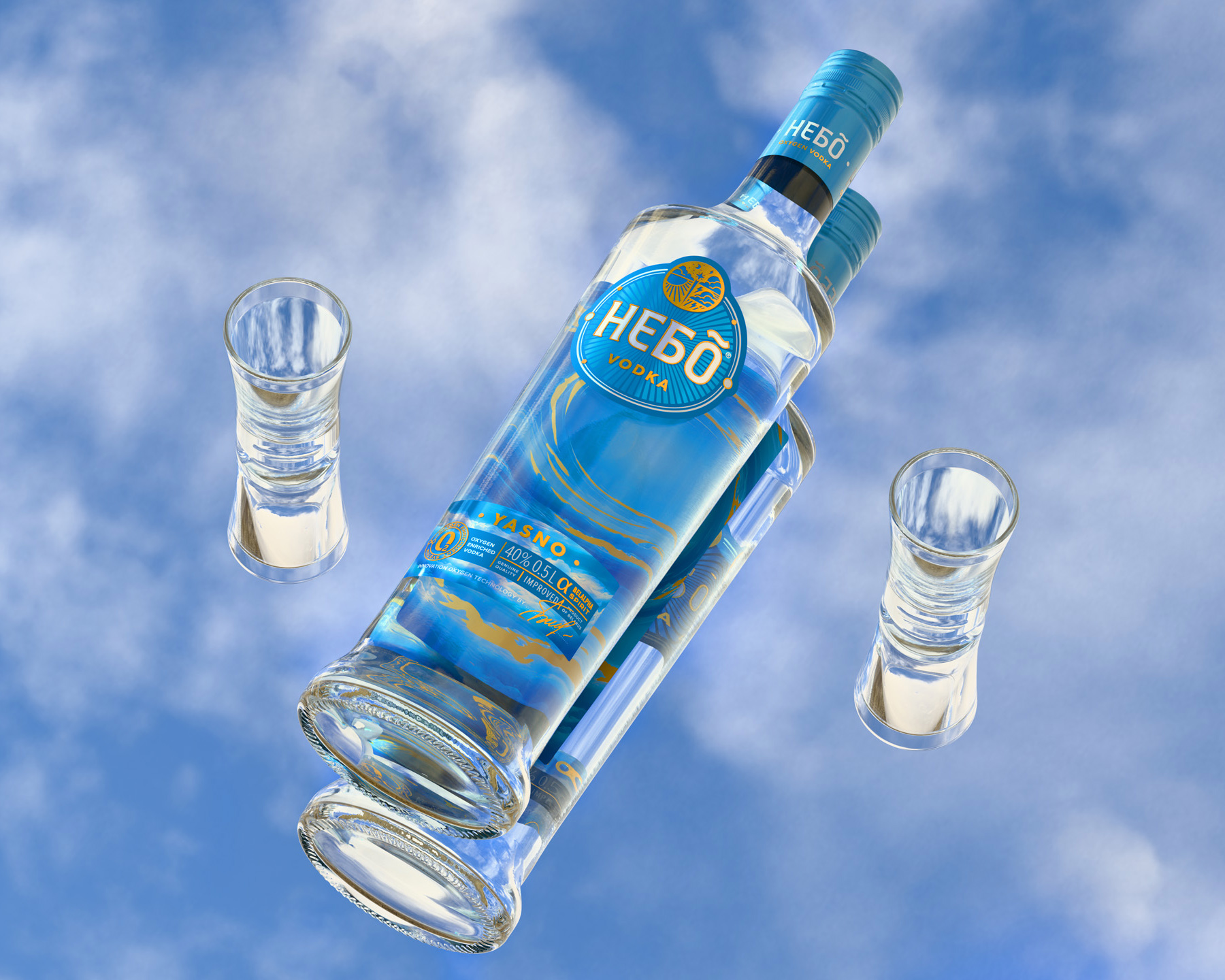Для OOO «Завод Бульбашъ» агентство ARMBRAND разработало дизайн водки НЕБО, которая производится с применением оксигенации — инновационной технологии обогащения кислородом.