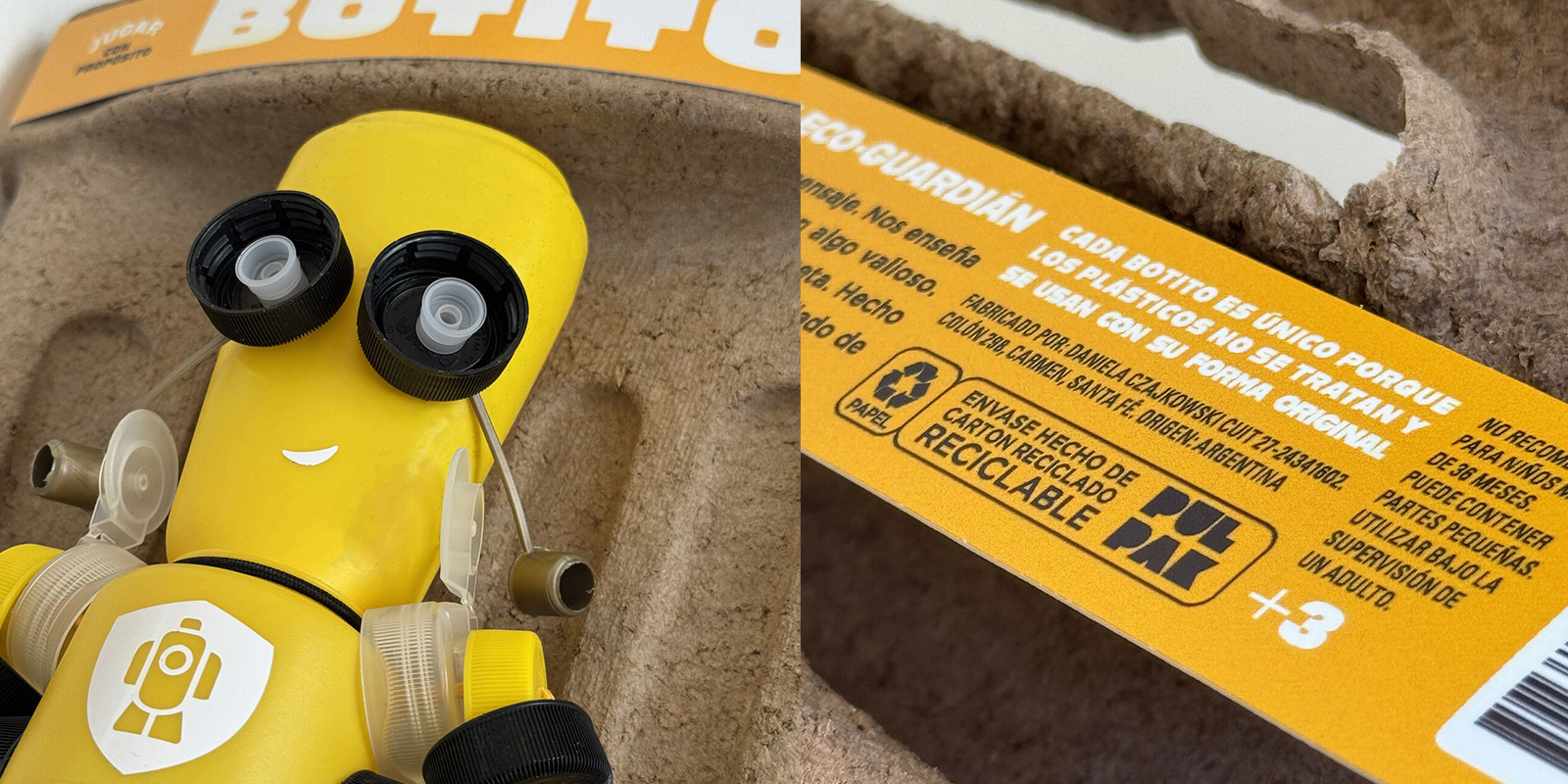 BOTITO Eco Guardián — это игрушечный робот, собранный из использованных пластиковых крышек и контейнеров, соединённых эластичными шнурами. Такая игрушка учит детей тому, что ненужные материалы могут послужить несколько раз. Проект родился благодаря специалистам в области охраны окружающей среды из Санта-Фе, Аргентина, Хосе Марии Родригезу и Даниэле Сцажковски. Таким образом они попытались превратить тонны пластикового мусора в мощный педагогический инструмент.