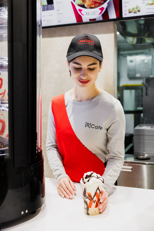 [R]Cafe — это выделенная часть в зоне выдачи заказов внутри существующих ресторанов с отдельной витриной. Гостям предлагается ассортимент блюд и напитков, вдохновленный гастрономическими трендами популярных кафе и чайных. Позиции можно заказать как на кассе, так и на киосках, на которых появится отдельная категория под названием [R]Cafe.