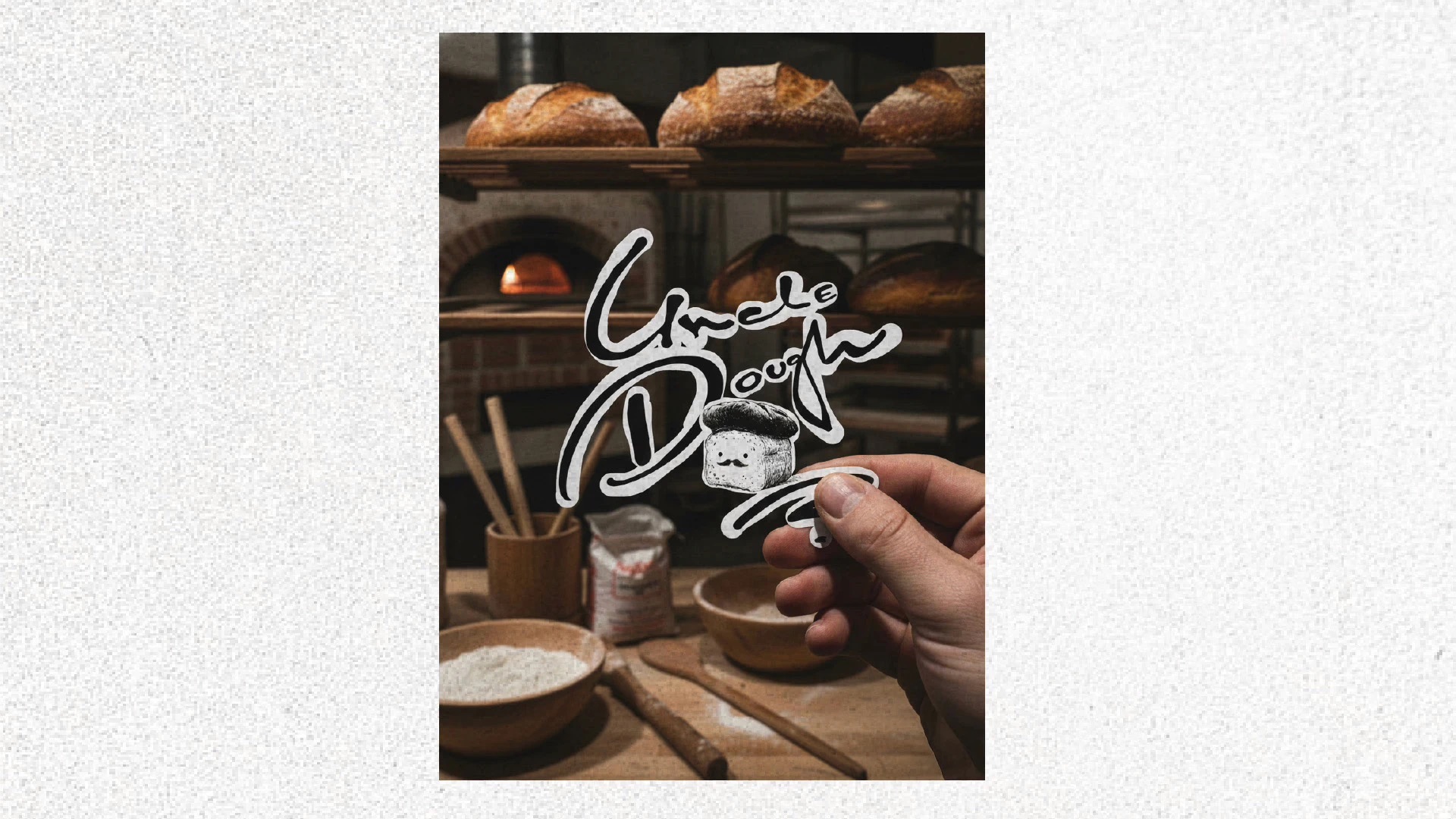Uncle Dough — пекарня хлеба на закваске, работа которой основана на принципах честности, долгом брожении и теплых соседских традициях. Её философия заключается в ремесле, терпении и характере. Хлеб здесь воспринимается не просто как продукт, а как ежедневный ритуал, объединяющий людей через заботу и близость. Цель проекта заключалась в том, чтобы создать айдентику, в которой ощущается человечность и открытость, тесно связанная с самой сутью ремесленного хлебопечения.