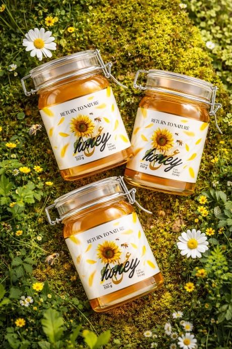 Проект дизайна упаковки мёда Return to Nature воплощает идею чистоты и близости к природе, объединяя в себе естественность и современную эстетику. Его цель — подчеркнуть природное происхождение мёда и придать простому продукту образ премиального бренда, вдохновлённого гармонией и экологичностью.