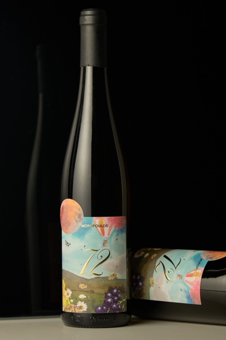 Парящие луны, воздушные шары, плывущие листья и порхающие бабочки — десятилетия сменяющихся сезонов и циклов, запечатлённые в жизни виноградника, существующего с 1972 года. Этикетка рассказывает историю ещё до того, как бутылка открыта. Вдохновлённая виноградником Мосхофилеро, впервые высаженным в 1972‑м, она передаёт ощущение лёгкости, воображения и неторопливого хода времени. Парящий шар и открытый горизонт отражают свежесть и ароматную лёгкость вина, а луна намекает на терпение, циклы природы и тихое созревание старых лоз.