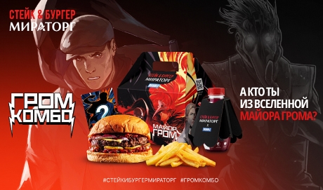 Гостям предлагается «Гром Комбо» — «обед Майора Грома» в акционном боксе, состоящий из гамбургера, картофеля фри, морса «Мираторг» в акционной упаковке и коллекционной своп-карта. Коллаборация сети «Стейк & Бургер Мираторг» с крупнейшим российским издательством комиксов BUBBLE приурочена к выходу 19 января на платформе «Кинопоиск» сериала «Майор Гром. Игра против правил».