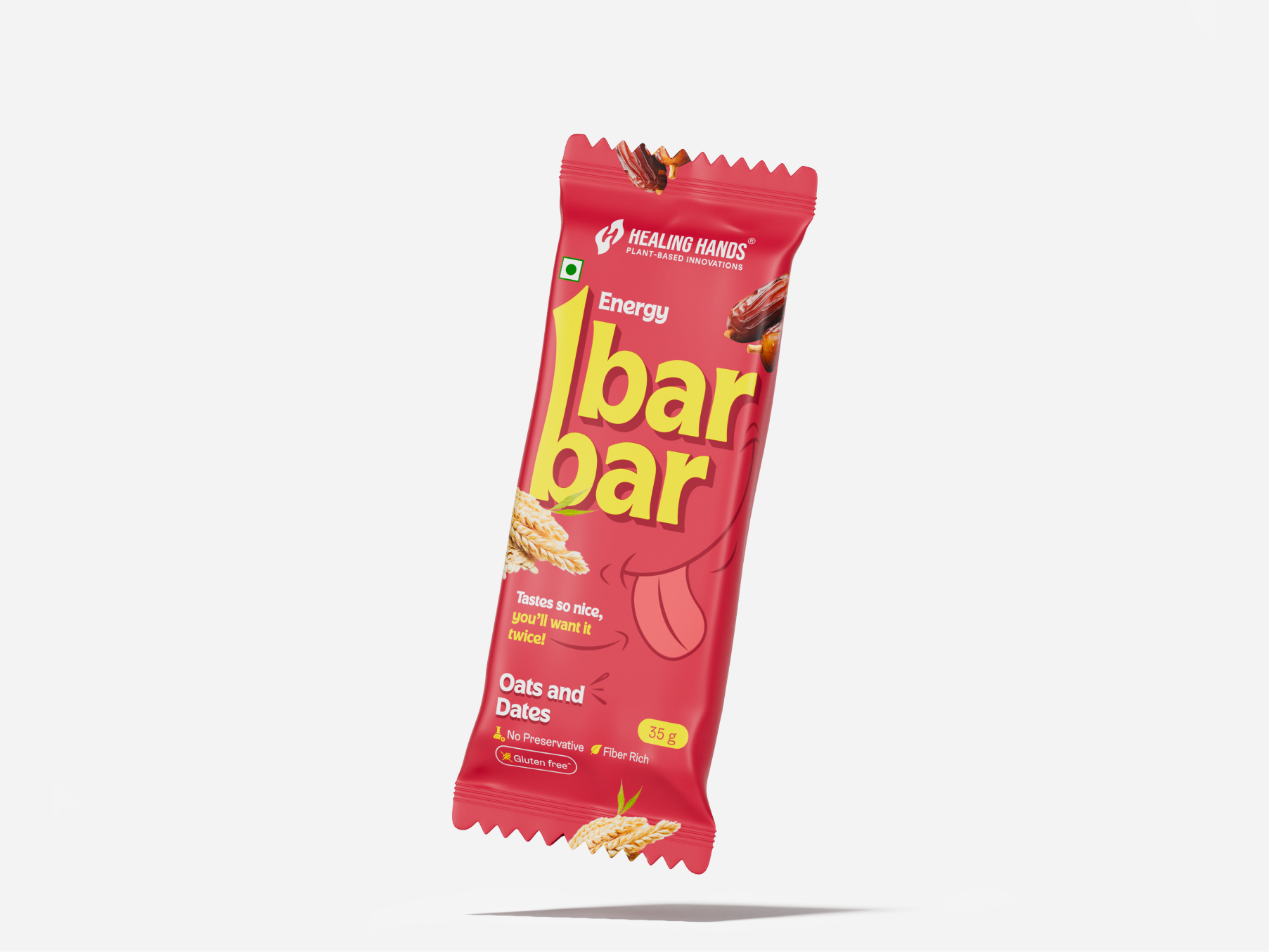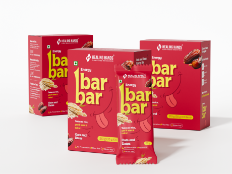 Healing Hands — это бренд растительных продуктов, который выпускает питательные товары, сочетающие в себе пользу и удовольствие. Для энергетического батончика Oats & Dates производитель поставил задачу разработать упаковку, воплощающую энергию, вкус и доверие в единой и смелой визуальной системе.
