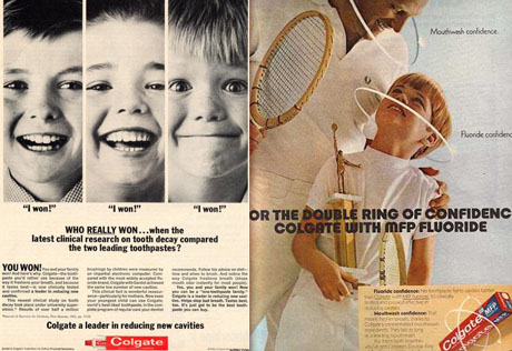 Реклама зубной пасты Colgate 1963 и 1971 годов