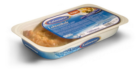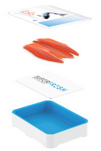 Компания Nautical Foods разработала упаковку для замороженных морепродуктов премиум-класса. В ней ключевыми элементами является термоформуемый лоток и крышка из гибкой плёнки. Пятислойный материал лотка Go-Green поставляется фирмой Coextruded Plastic Technologies. Но здесь гораздо интереснее способ термоформования лотков. Вкратце, в отличие от традиционных систем термоформования, которые используют рулонные механизмы, эти лотки разрезаются на заготовки и ставятся друг на друга, подобно плоским картонным заготовкам. Предварительный этап нагрева здесь является важнейшим шагом в последовательном производстве лотка.