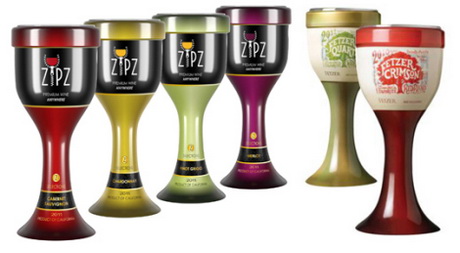 Бокал Zipz представляет собой уникальный высокий стакан в форме кубка. Разработан он был специально к началу бейсбольного сезона в США. Он изготовлен из прозрачного ПЭТ и оформлен этикеткой-манжетой. Герметичная мембрана из фольги накрыта пластиковой крышкой, которая может использоваться для повторного закрытия контейнера или же в качестве подставки под бокал. Одним из преимуществ такой упаковки является то, что она герметично закрыта с помощью Clean Wrap, что позволяет сохранить вино свежим, а бокал прозрачным. Срок хранения такого вина достигает 12 месяцев.