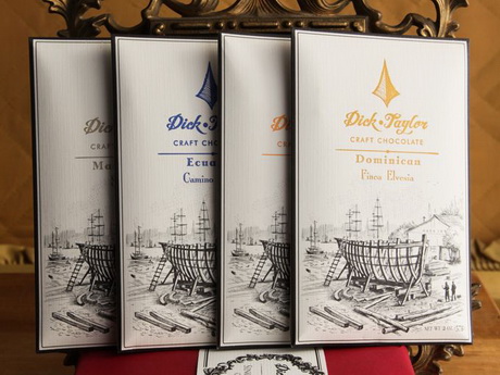 На другой стороне спектра глянцевых и стильных шоколадных упаковок находится плитка от компании Dick Taylor Chocolate. Два основателя, бывший плотник и моряк, выбрали для своей обёртки изображение корпуса судна, вершину мастерства в плотницких работах. Брат одного из основателей работает в знаменитой студии Pixar. Он сделал так, чтобы рисунок отражал старинное наследие округа Гумбольдт, славящегося судостроением. Именно здесь расположена компания-производитель шоколада Dick Taylor.