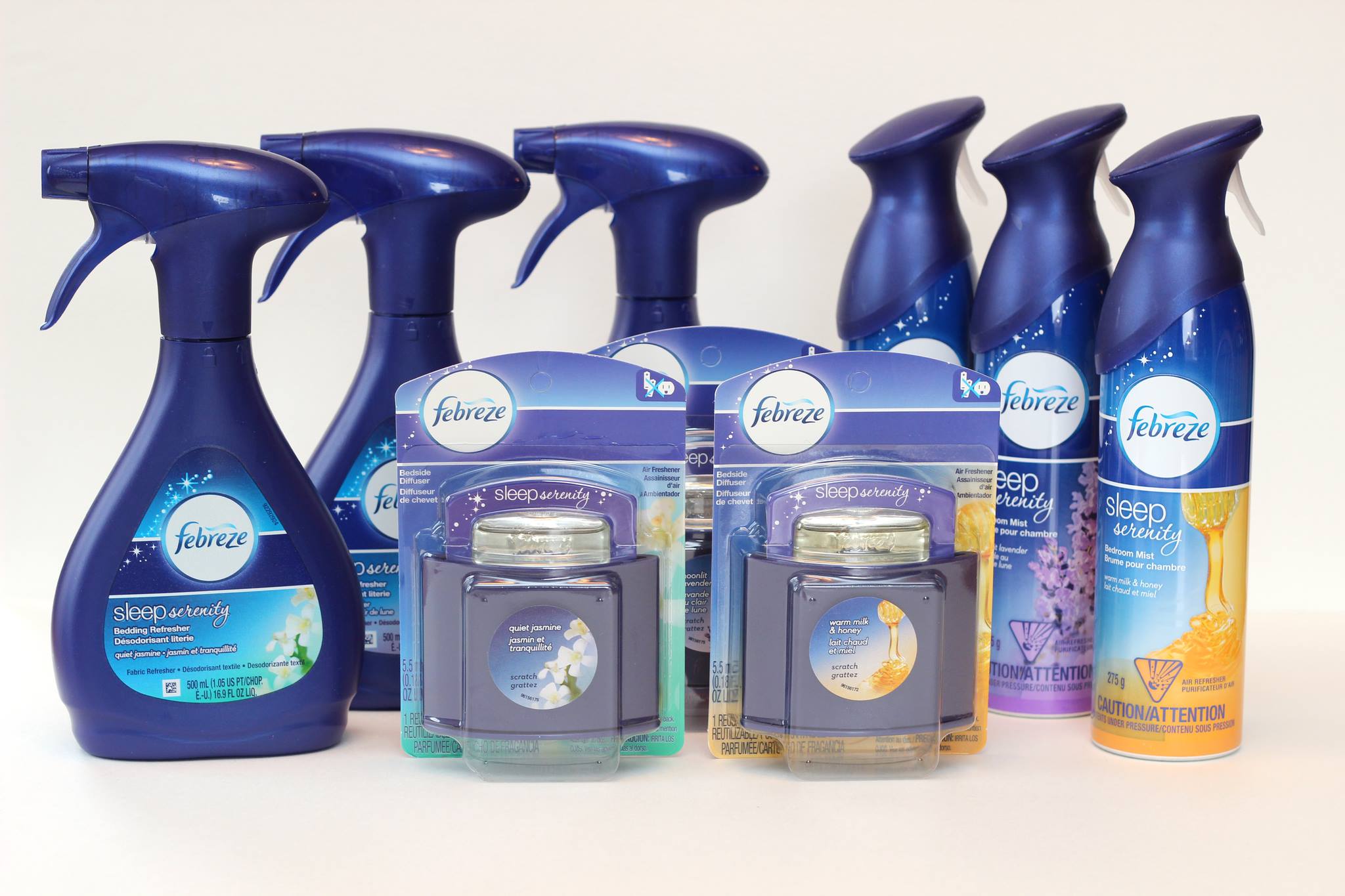 Серия освежителей воздуха Febreze Sleep Serenity ориентирована на то, чтобы помочь потребителям расслабиться и улучшить их сон. Упаковка, на которой изображены лаванда и жасмин или молоко и мёд пробуждают воспоминания о комфорте, спокойствии и мирном сне. И эти действующие на подсознание сообщения бренда являются самой эффективной подачей бренда.