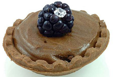 Троицу рекордсменов замыкает шоколадное пирожное стоимостью $18 тысяч, изготовленное небольшой сетью ювелирных магазинов Mervis Diamond. Десерт был приготовлен из шоколада и украшен одной ягодой ежевики, в которую вложен настоящий 2-каратный бриллиант.