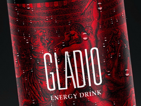 Итальянское агентство Flat Design Studio в лице Макса Липполиса (Max Lippolis) разработало концепт упаковки для совершенно нового на рынке Италии энергетического напитка. Чтобы привлечь внимание потребителей и выделиться среди многочисленных напитков, существующих на рынке, концепт решили базировать на сильном образе — римских гладиаторов. Отсюда и соответствующее название бренда — Gladio.