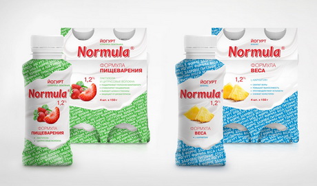 Студия DEZA разработала дизайн упаковки йогуртов Normula для Агропромышленного союза «АЛЕВ». Из списка преимуществ продукта креаторы сделали типографику.