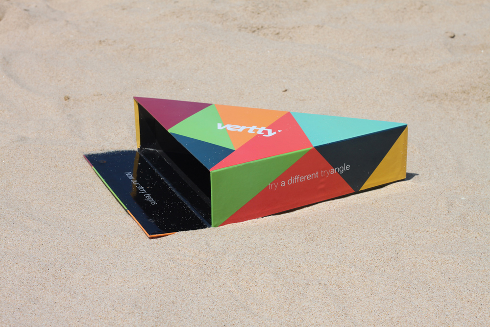Компания Vertty переосмыслила концепт пляжного полотенца, привнося в него городскую изощрённость. Каждая модель полотенца состоит из восьми треугольников разных цветовых оттенков, создавая впечатление, что, если соединить их все вместе как паззл, то можно получить огромное пляжное полотенце. Португальский дизайнер Фредерико Кардозо (Frederico Cardoso) занимался разработкой фирменной символики и упаковки продукта, сообщает Upakovano.ru.