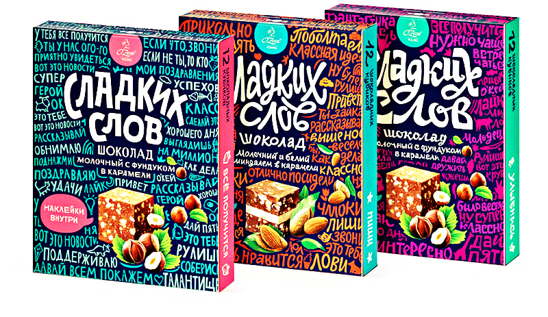 В начале 2014 года Кондитерская компания «Озерский сувенир» выпустила инновационный для российского рынка продукт — шоколад в кубиках O`Zera Young «Сладких слов». Целевая аудитория новинки — молодежный и подростковый сегмент, который сегодня все больше переходит в мир невербального общения — социальных сетей и смс-сообщений. На основе потребительских предпочтений был разработан яркий дизайн упаковки с тематическими посланиями, коллекция стикеров и специальное мобильное приложение для App Store, которое можно скачать, перейдя по ссылке www.sweetswords.ru или по QR-коду на интерактивный портал «Планета Сладких слов». В приложении доступны разделы: «Погода» и «Предсказания». В «Погоде» предоставляется температура воздуха на улице, учитывая локальное местонахождение пользователя. Раздел иллюстрируется шутливыми изображениями, а также веселыми подбадривающими фразами. В разделе «Предсказания» можно получить случайный шуточный ответ на любой заданный вопрос.