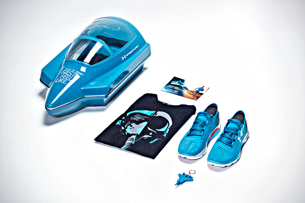 Новые кроссовки американской марки Speedform Apollo представляют собой лимитированную версию продукта, которая потребовала уникальной упаковки, соответствующей марке. Собственная команда дизайнеров компании Under Armour разработала подобную упаковку, которая напоминает реактивный самолёт. На месте пилота в таком самолёте и оказываются кроссовки.