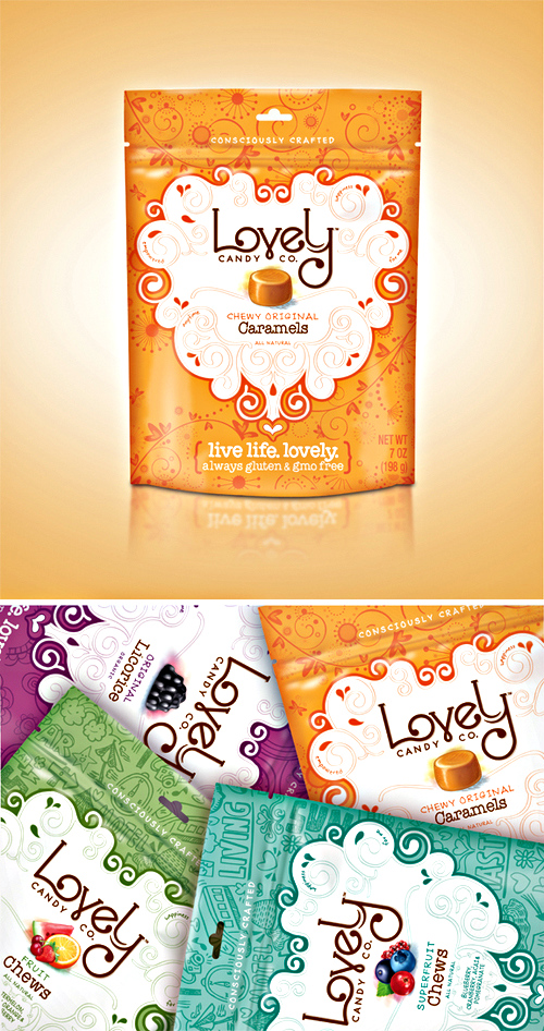 Агентство Design Resource Center закончило работу с компанией Lovely Candy Company над созданием уникальной линейки кондитерских изделий. Дизайнеры использовали взгляды потребителей, наблюдения за категорией и конкурентными товарами для того, чтобы определить возможность целевой аудитории товара — потребителя, заботящегося о составе продукта, особенно, внутри категории безглютеновых товаров без ГМО.