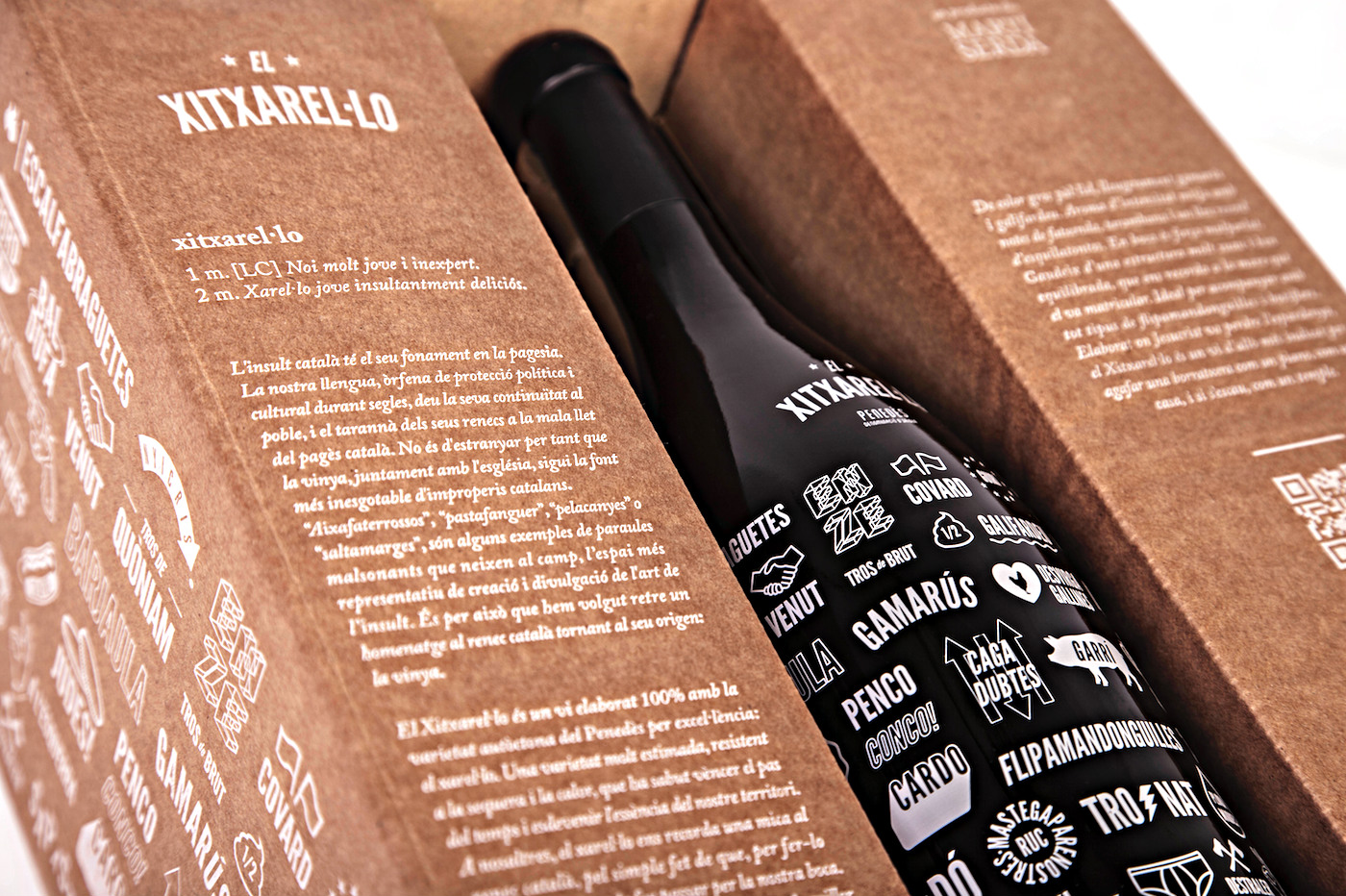Чтобы сохранить язык, производители вина El Xitxarel посвятили ему бутылку. На неё наносится 77 каталонских ругательств. Каждое из них проиллюстрировано так, чтобы было понятно, что оно означает. На боку бутылки представлен Trompímetre (вымышленный спиртометр), который определяет «уровень опьянения» с помощью старинных оскорблений.