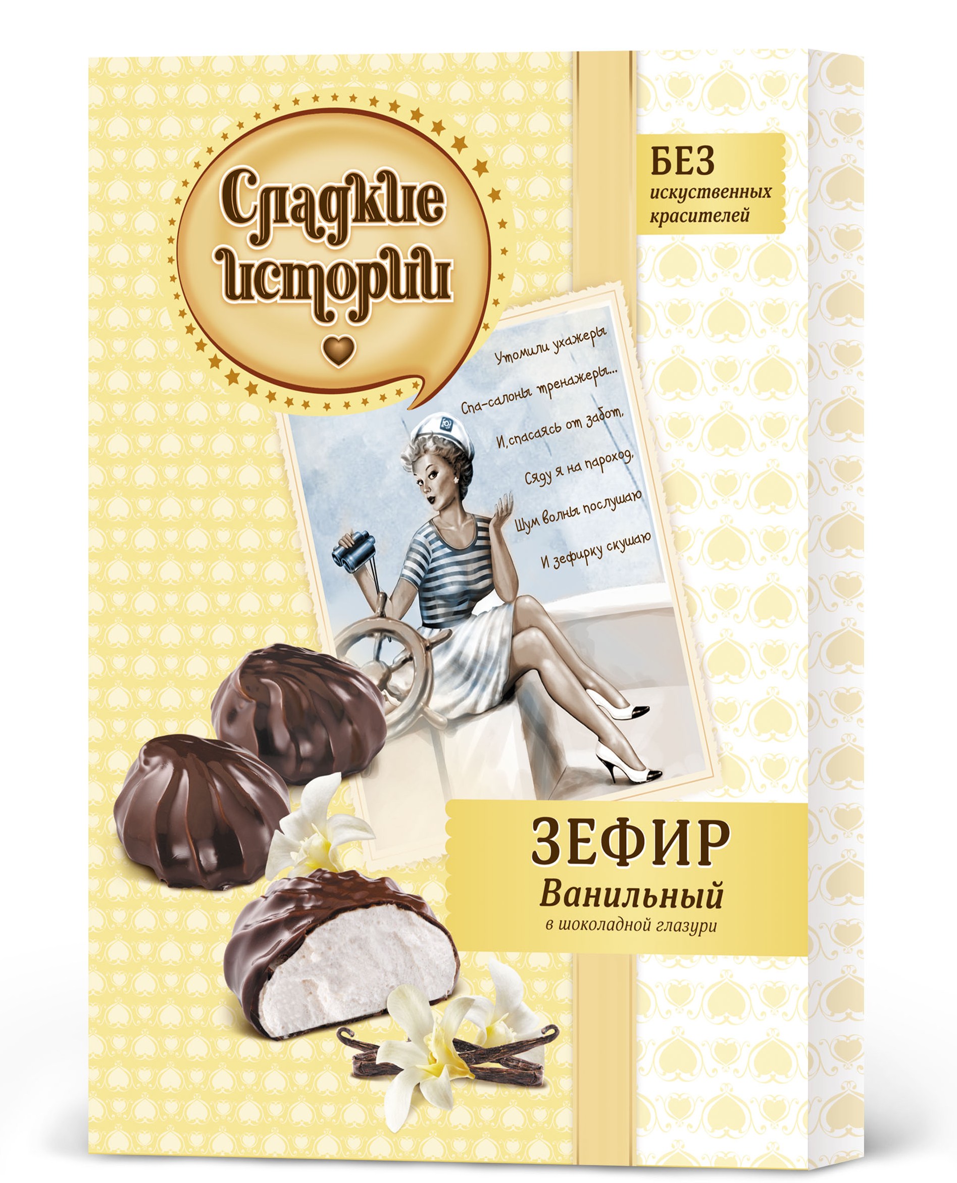 Торговая марка «Сладкие истории»®, запущенная Холдингом «Объединенные кондитеры» в 2012 году, пополнилась новыми «историями» — глазированным зефиром в картонной упаковке.