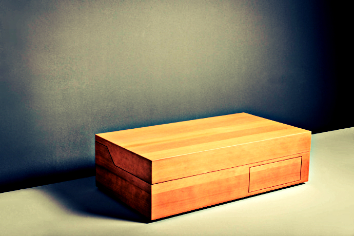 Вся эта конструкция упакована в деревянный ящик строгой формы. Натуральная древесина обработана несколькими слоями лака, которые защищают упаковку от воздействия влаги. Магнитный замок надежно закрывает умывальник. Дизайнер предусмотрел возможность подключения воды к конструкции и вариант наполнения водой специального резервуара, объема которого хватит, чтобы умыться взрослому человеку.