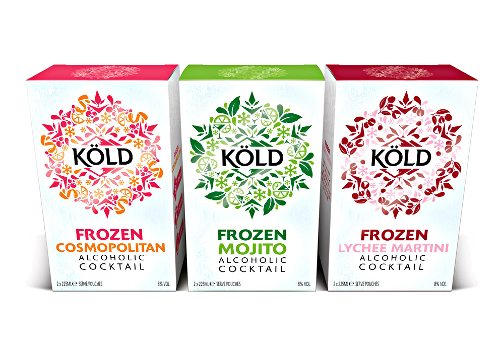 Бренд Köld ориентирован на тех, кто наслаждается настоящими коктейлями, и желает воссоздать их вкус в домашних условиях. Коктейли Köld разлиты по отдельным порционным пакетам, которые можно помещать в морозилку, а затем выдавливать в стакан. Поскольку это замороженный коктейль, дизайнеры решили придерживаться чистой, понятной и уникальной стратегии. Снежинка дала им возможность разработать нечто смелое и культовое, предоставив необходимую гибкость в передаче вкуса.