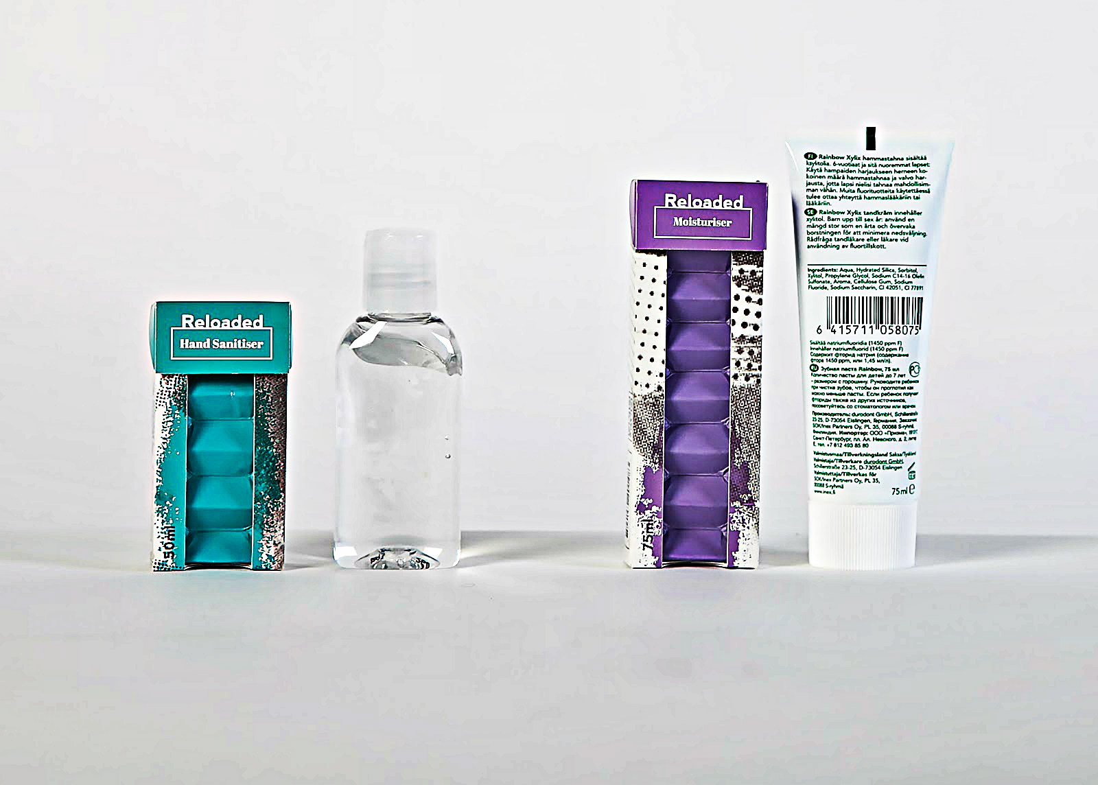 Студенческий проект Reloaded создавался для участия в конкурсе Recreate Packaging 2014. Задача дизайнеров состояла в том, чтобы воссоздать упаковку для путешествий с использованием возобновляемых волокнистых материалов от компании Stora Enso. Данный проект от Дункана К. Андерсона и Дженны Парккинен занял третье место на конкурсе, сообщает Upakovano.ru. С самого начала дизайнеры пытались создать упаковку для жидких продуктов, которая позволит устранить из оборота огромное число пластиковых компонентов, обычно ассоциирующихся со стандартной упаковкой. В итоге были выбраны антибактериальный гель для рук, увлажняющий крем и зубная паста.