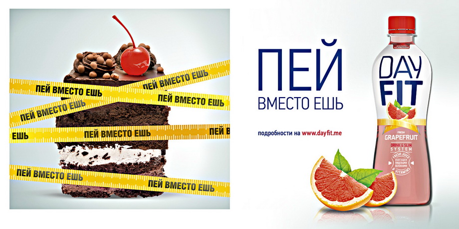 Концепция лончевой кампании напитка DAYFIT со слоганом «Пей вместо ешь» разработана агентством GREAT. Она рассчитана на потребителей, которые следят за своим здоровьем и весом, часто следуют диетам и испытывают дискомфорт, ограничивая себя в еде. Основная идея в том, что DAYFIT — это вкусная альтернатива вредным перекусам, которая позволяет контролировать чувство голода. Рекламная кампания реализована в Екатеринбурге.
