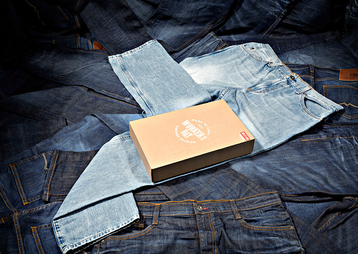 Дизайнерское агентство KOREFE из Германии разработало лимитированную серию джинсов Mustang, которая реализовывалась в интернет-магазине компании в преддверии Дня Рабочего в 2013 году. Упаковка таких джинсов была сделана «наизнанку», пишет Upakovano.ru.