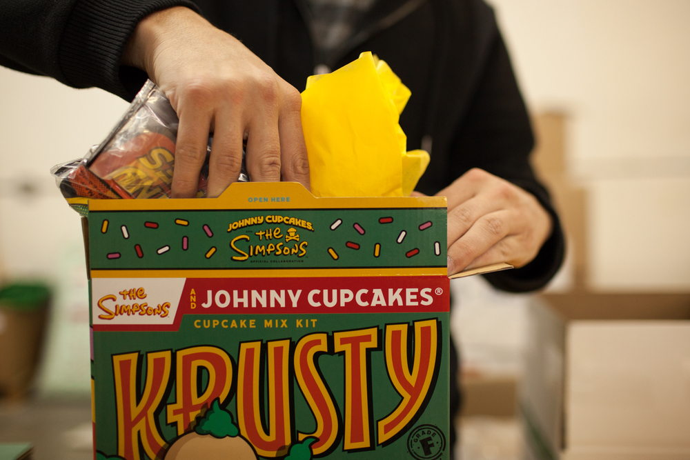 Компания Twentieth Century Fox Consumer Products и магазин Johnny Cupcakes (ненастоящая пекарня, специализирующаяся на изготовлении футболок с рисунком) объявила о запуске совершенно новой коллекции одежды и аксессуаров. Новая серия одежды оформляется с использованием персонажей культового мультсериала «Симпсоны». Основным фокусом линейки продукции являются три специально упакованные, огромные коробки с «кексами», каждая из которых посвящена одному из любимых персонажей франшизы.