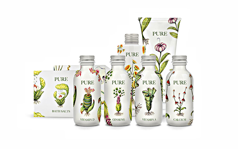 Оригинальное видение мира итальянского художника Луиджи Серафини нашло свое отражение в дизайне упаковки косметического бренда Pure.