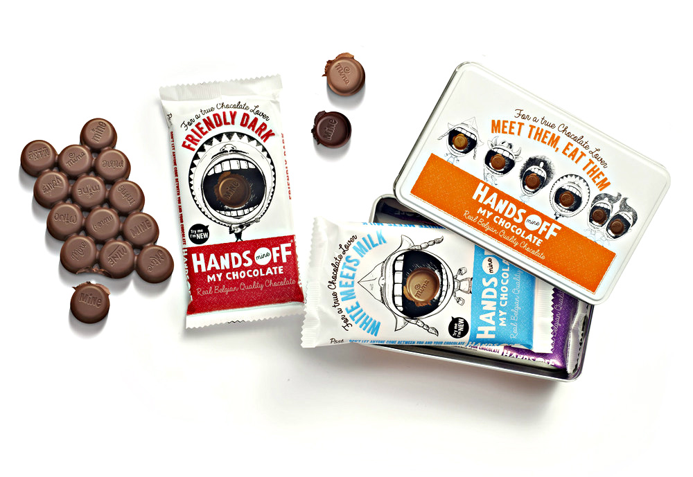 Агентство из Нидерландов Yellow Dress Retail B.V. разработало динамическую упаковку для нестандартной шоколадной компании под названием Hands Off My Chocolate («Руки прочь от моего шоколада»). Производитель подразумевает, что к дегустации шоколада нужно относиться очень серьёзно, что подчёркнуто в упаковке смелыми цветами и причудливыми иллюстрациями. Таким образом шоколад Hands Off My Chocolate стремится разрушить существующие дизайнерские стандарты в мире шоколада. Целью дизайнеров было создать новые продукты, которые полюбятся всем ценителям шоколада, пишет Upakovano.ru.