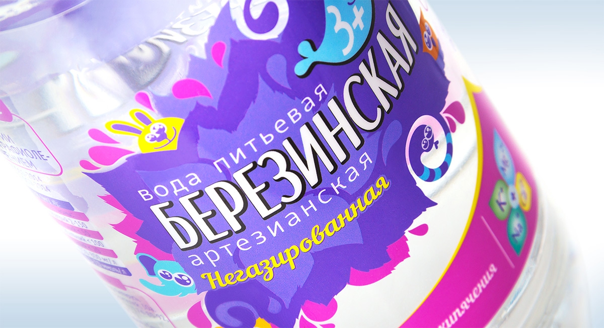 Особое внимание креаторы уделили детской питьевой воде, выполнив плашку в достаточно редкой для данной продуктовой категории палитре. Яркие цвета, озорные зверушки, которые спрятались в «березовой кроне» центрального элемента, делают бутылку очень привлекательной для ребятишек и их родителей.