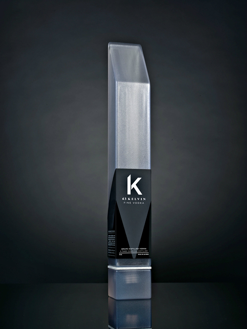 Джим Богенриф (Jim Bogenrief) из калифорнийского Art Center College of Design представил стильную упаковку водки 63 Kelvin Fine Vodka. Прозрачная бутылка и матовая чёрная этикетка олицетворяют чистоту водки, а угловатые формы демонстрируют упрямый характер напитка. Дизайн этой упаковки создаёт сильное впечатление.