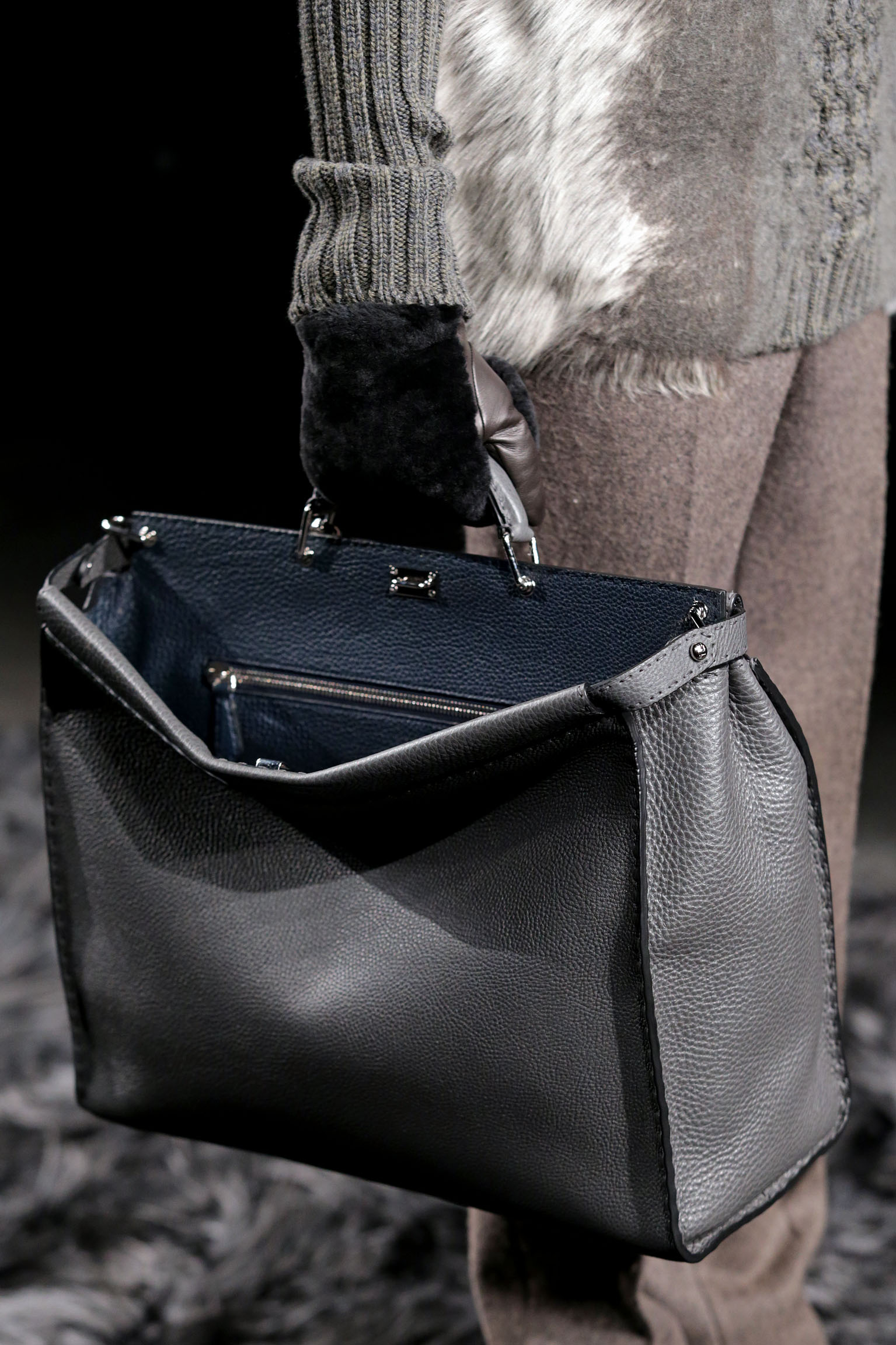 «Сумка Peekaboo опирается на концепт нашёптанной роскоши, где необходимо делать открытия», — рассказала Сильвия Вентурини Фенди. И великолепный аксессуар для мужчин действительно можно назвать открытием. Это более крупная версия, по сравнению с женской сумкой Peekaboo. При этом замок сумки спрятан с помощью кожи, что придаёт ей более прямолинейный внешний вид.