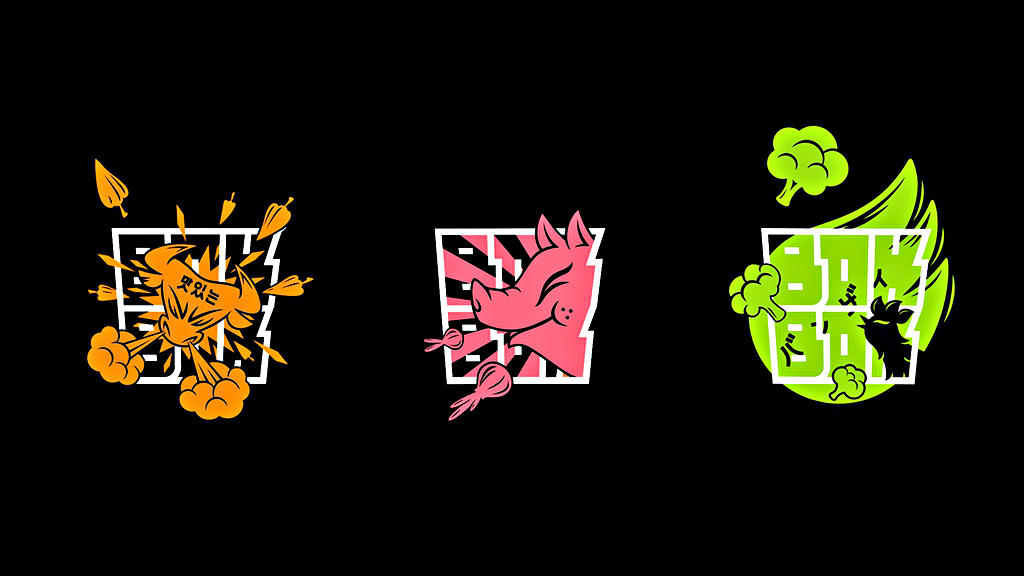 Логотип (упакованное в коробочку для лапши название) позволяет сразу безошибочно определить категорию: перед нами — лапшичная. Стиль — современная Азия с традиционным вкусом. Иллюстрации передают настроение бренда: ярко, броско, кавайно.