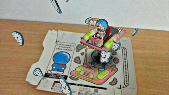 Это трёхмерные изображения персонажа Doraemon, которые оживают у вас дома. И это не просто изображения, вы создаёте их сами, раскрашивая их как вам угодно. После этого необходимо запустить на смартфоне специальное приложение, которое позволяет оживить ваших персонажей.