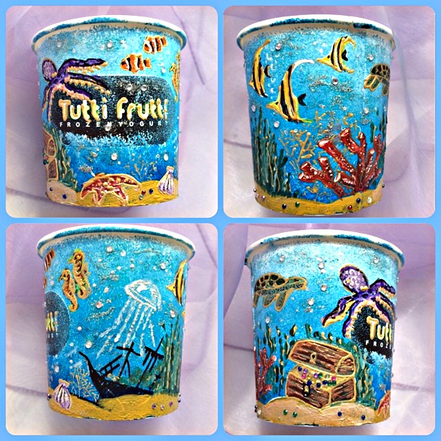 Результат превзошел все ожидания: посетители стали использовать не только предлагающиеся в кафе карандаши и фломастеры, а создавали настоящие произведения искусства: инкрустировали фирменные стаканчики стразами, делали аппликации и рисовали комиксы.