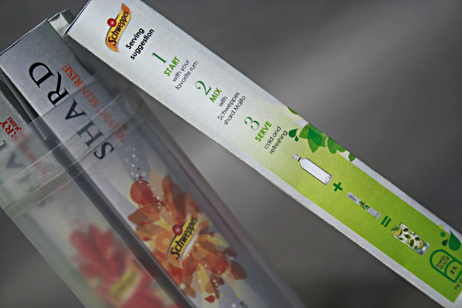 Упаковку можно использовать после открытия в качестве подноса для коктейлей. Целью проекта было создать естественное расширение линейки Schweppes, придумав при этом интересную и практичную упаковку.