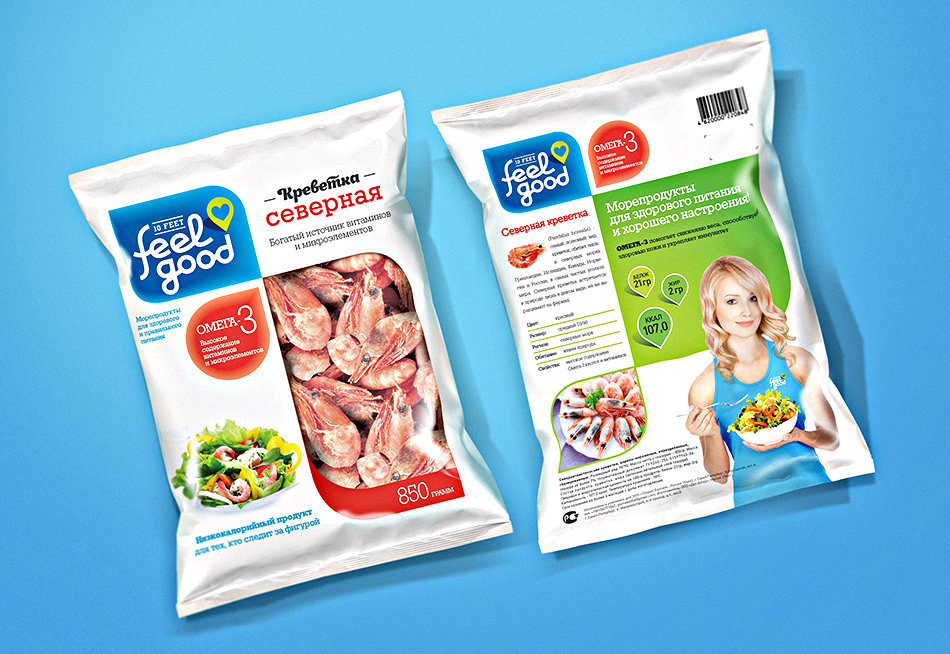 «Мы решили исправить этот недосмотр и позиционируем морепродукты Feel Good как очень полезную для здоровья пищу. Вся инфографика на упаковке явно сообщает о полезных веществах, витаминах и микроэлементах в составе. Основная целевая аудитория — женщины, следящие за прекрасным самочувствием», — рассказали авторы проекта.