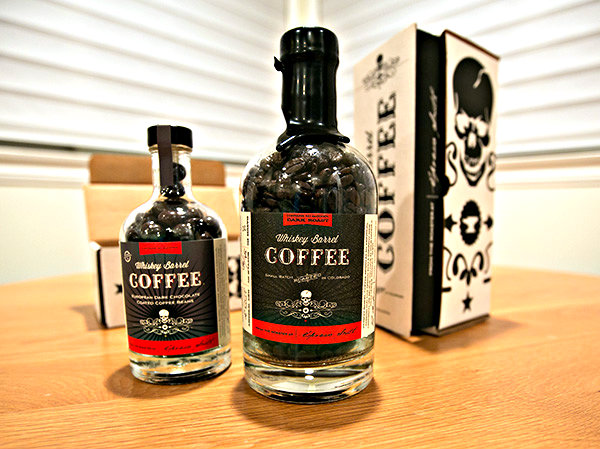 «Это не ваш утренний кофе» — говорит торговая марка Whiskey Barrel Coffee удивленному потребителю. «Виски-кофе», упакованный в винтажные бутылки, выдерживался в бочках с виски несколько месяцев, зрел и обжаривался.