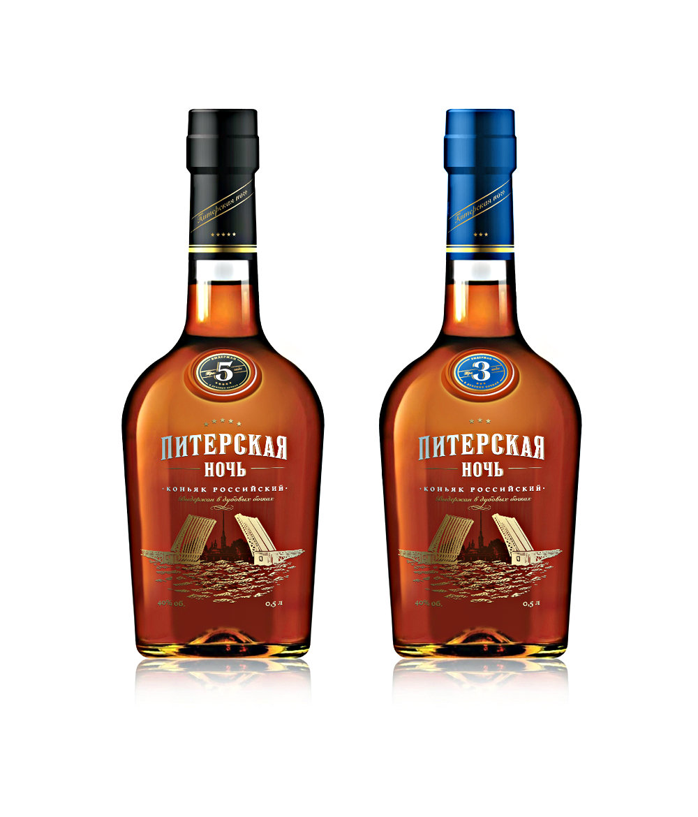 Трех- и пятизвёздочный коньяк «Питерская Ночь» будет выпускаться в бутылке объемом 0,5 литра и фляжке 0,25 литра.