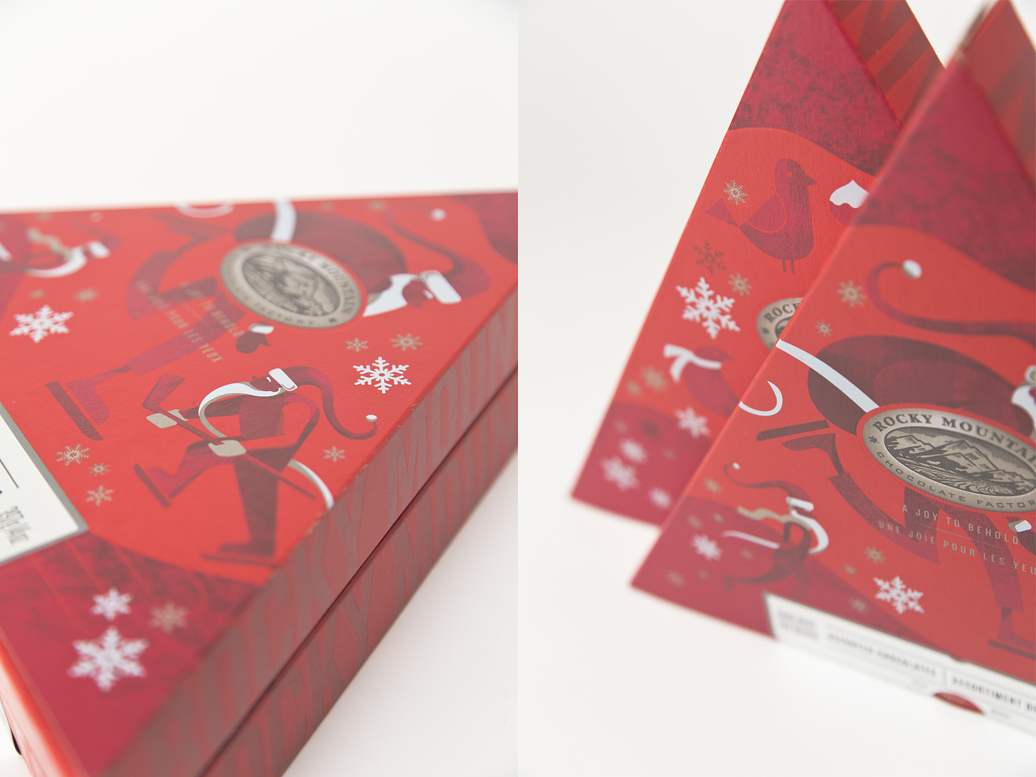 Перед креативным агентством Dossier Creative была поставлена задача возродить флагманскую линейку треугольных подарочных коробок с шоколадом Rocky Mountain. Целью шоколадной фабрики Rocky Mountain было продемонстрировать характер бренда и увеличить его продажи. Помимо обновления существующих подарочных коробок, дизайнерам предстояло придумать новую линейку премиум-класса, пишет Upakovano.ru. Кроме того, к рождественскому периоду необходимо было подготовить праздничную версию подарочных коробок.