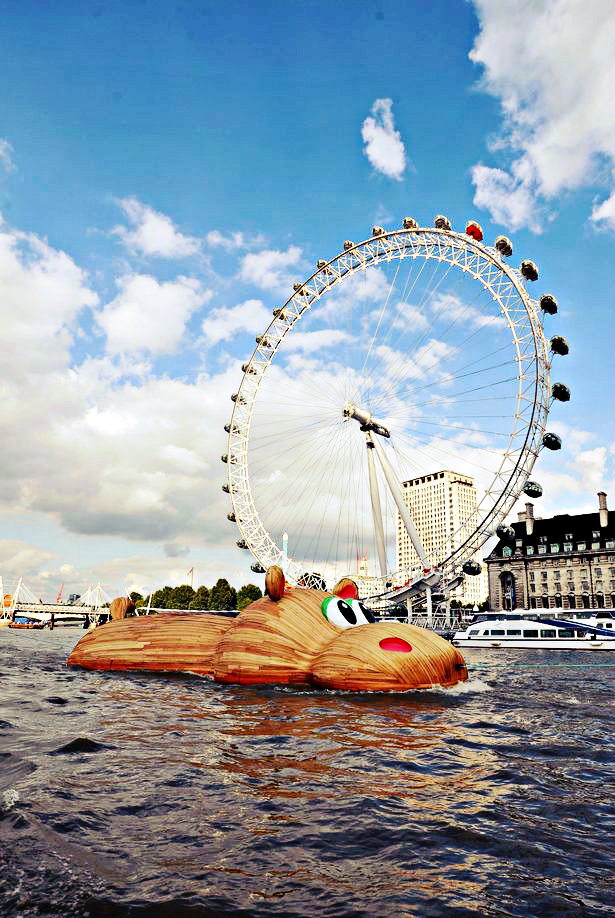 Голландский художник Флорентийн Хофман (Florentijn Hofman), известный своим гигантским резиновым утёнком, создал ещё одну грандиозную скульптуру. На этот раз это гиппопотам по имени HippopoThames, названный так в честь реки Темза. Скульптура длиной 21 метр изготовлена из деревянных панелей. Она была построена в Королевских доках, что в Восточной части Лондона, пишет Upakovano.ru.