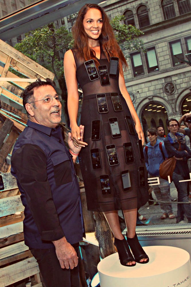 Израильский дизайнер Эли Тахари решил переместить айфоны из карманов и сумочек прямо на одежду. Он разработал чёрное платье из тюли, увешанное 50 айфонами. Произведение дизайнера вошло в его коллекцию одежды Весна 2015, которая была представлена во время Недели мод в Нью-Йорке. Дебют платья совпал с ожидаемым запуском на рынок шестого айфона, пишет Upakovano.ru. Тем не менее, платье украшено предшественниками новинки — телефонами iPhone 5S.