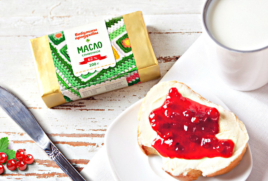 Компания, выпускающая молочные и кисломолочные продукты, решилась на рейстайлинг, чтобы отсечь ассоциации с конкурентом «Домик в деревне» и получить новый уникальный фирменный стиль. За основу были взяты вязаные изделия: салфеточки, покрывала, платочки. Яркие цвета использованы с целью привлечения внимания покупателя и создания образов деталей деревенского интерьера.
